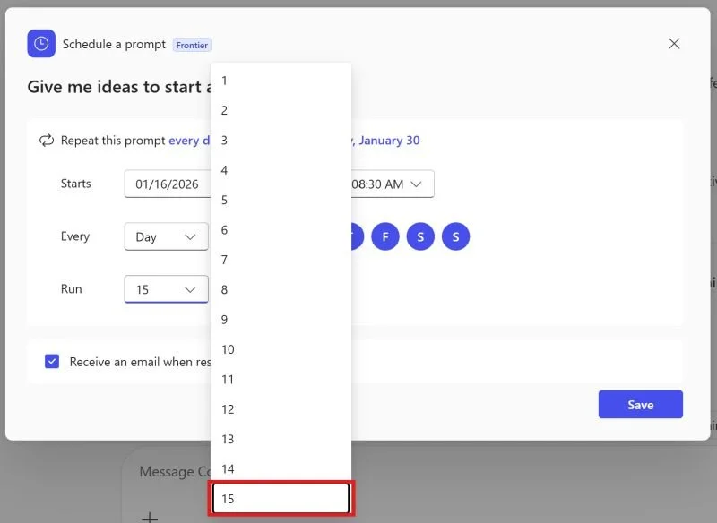 We can now schedule more prompts in more places and in more flexible ways, and these new capabilities will be moving to General Availability by next month according to MC1189911. But we are still limited to only setting up 15 distinct runs on that schedule.