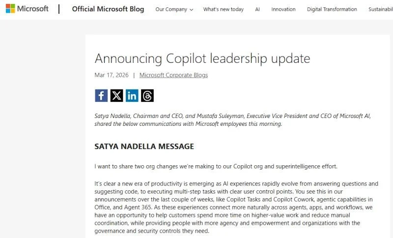 Yesterday, I wrote about Work IQ, and the importance of an ecosystem that has captured much of the world's business data to Microsoft's unique proposition in the AI age. But with leadership changes announced for Copilot, are there signs that Microsoft is focused on a different moat than the one that is of greatest importance to most of its customers?