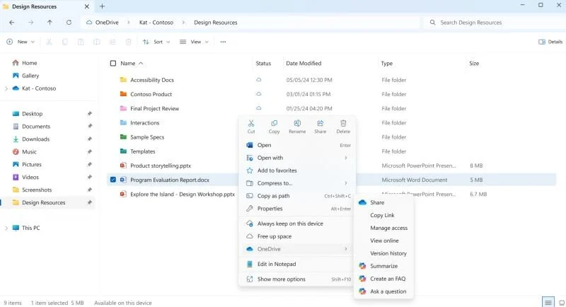Soon, many of the Copilot actions you can take in OneDrive will be available directly from File Explorer using the easy OneDrive to Windows integration that's available. It will be arriving from mid-September. See MC1155433 for more info.